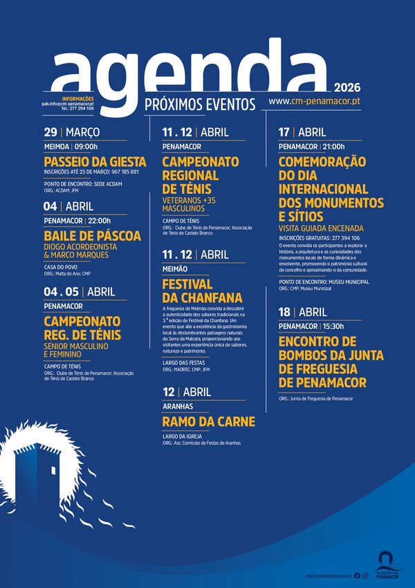 Cultura, desporto e convívio marcam a programação dos próximos dias em Penamacor, com várias iniciativas abertas à ...10 Mar a 05 Abr 2026DesportoEventos Culturais -