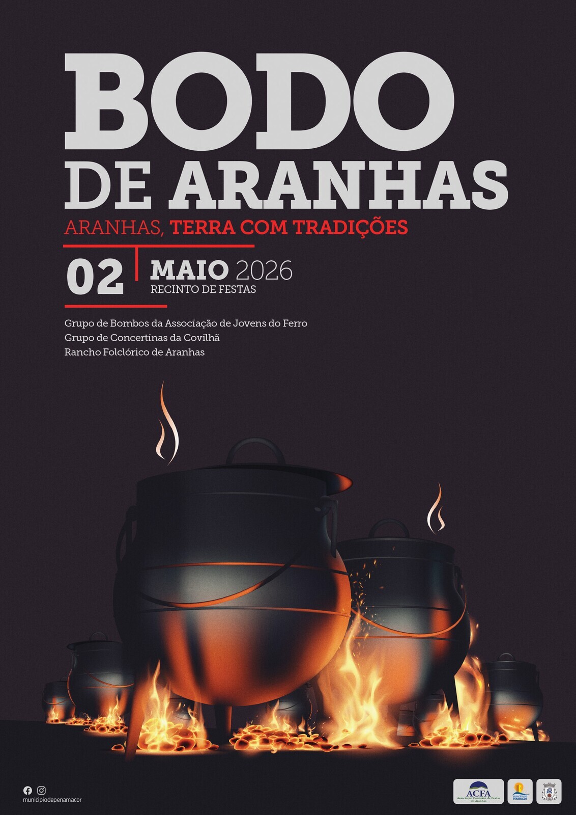 A Associação Comissão de Festas de Aranhas volta a promover o tradicional Bodo de Aranhas, que se realiza no próximo dia 2 de maio, a partir das 11h00, no Recinto de Festas da aldeia. O evento inclui um almoço gratuito, aberto a todos que os que queiram participar, onde serão servidas iguarias típicas como chanfana de cabra, sopa de grão e feijoada, confecionadas em panela de ferro ao lume.
