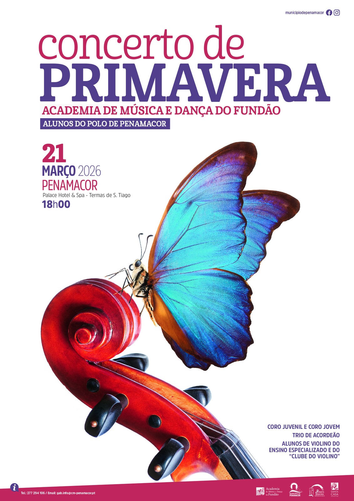 A Academia de Música e Dança do Fundão promove, no próximo dia 21 de março, mais uma edição do Concerto de Primavera, que terá lugar no Palace Hotel & Spa - Termas de S. Tiago, em Penamacor, pelas 18h00.