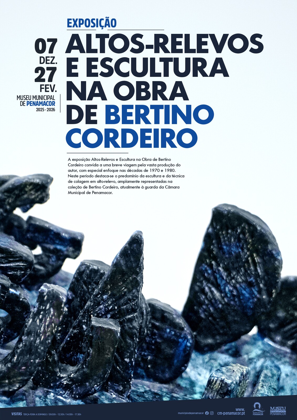 A exposição Altos-Relevos e Escultura na Obra de Bertino Cordeiro estará patente no Museu Municipal de Penamacor entre 7 de dezembro de 2025 e 27 de fevereiro de 2026. A mostra propõe uma viagem sintética pela vasta produção do artista, destacando sobretudo as décadas de 1970 e 1980, período marcado pelo predomínio da escultura e da técnica de colagem em alto-relevo, amplamente representadas na coleção de Bertino Cordeiro, atualmente à guarda da Câmara Municipal de Penamacor.