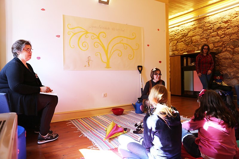 Paralelamente, decorreu mais uma sessão da “Hora do Conto”, na qual foi trabalhado o livro “Plantar um Beijinho”. Depois de ouvirem o conto com entusiasmo, as crianças desenvolveram uma atividade sobre o livro, que consistia na construção de uma caixa, onde, posteriormente, foi colocado um “beijinho”.