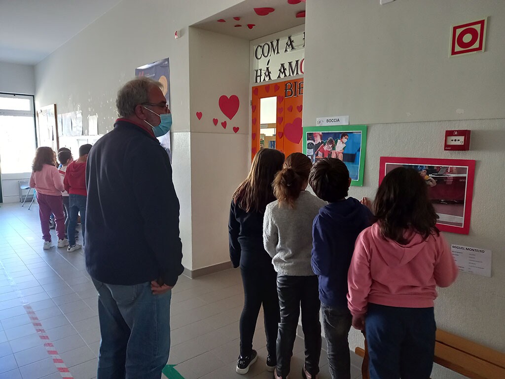 Para além da visualização de filmes, e respetivo debate realizado posteriormente, foram expostas fotografias dos atletas que compuseram a Missão Tóquio2020 com referência a alguns dados biográficos e a respetiva modalidade desportiva. Foi ainda lançado o repto aos alunos para que, utilizando a imaginação, papel e lápis, desenhassem um “protótipo” de um equipamento que pudesse fazer a diferença e melhorar a performance destes atletas (uns óculos, uma cadeira de rodas especial, entre outros).