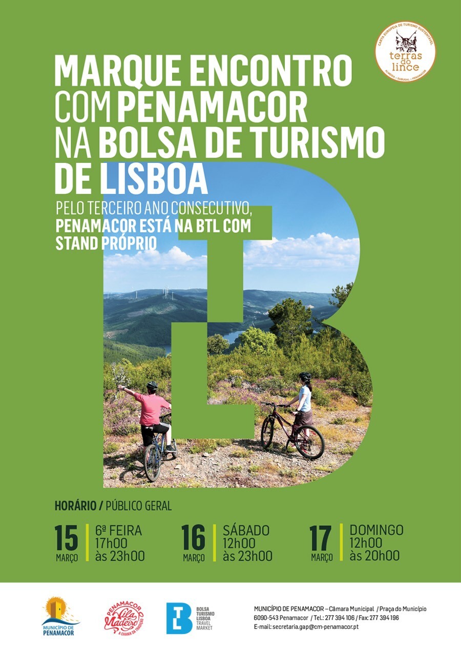 O Município de Penamacor vai participar na BTL, com stand próprio, pela terceira vez consecutiva. A BTL 2019 decorrerá entre 13 e 17 de março na Feira Internacional de Lisboa (FIL). A presença no certame insere-se numa estratégia de promoção turística que Penamacor vem prosseguindo. Ancorado na marca Penamacor Vila Madeiro e no reconhecimento pela Carta Europeia de Turismo Sustentável do território Terras do Lince, o Município pretende dar a conhecer os produtos locais e o património histórico e natural, além das unidades de alojamento.