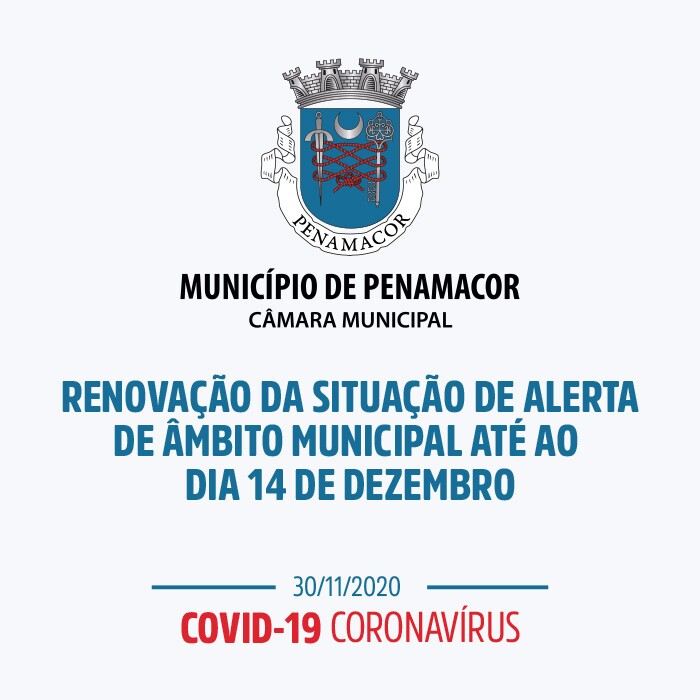 Tendo sido ouvida a Comissão Municipal de Proteção Civil de Penamacor, mantém-se ativo o Plano Municipal de Emergência de Proteção Civil e é renovada a situação de alerta de âmbito municipal até ao dia 14 de dezembro, abrangendo assim todo o território municipal com a adoção das medidas e recomendações emanadas da Direção Geral de Saúde relativamente ao COVID-19, mantendo a necessidade, por razões de saúde pública, da adoção de regras de ocupação, permanência e distanciamento físico, bem como regras de higiene. Assim: