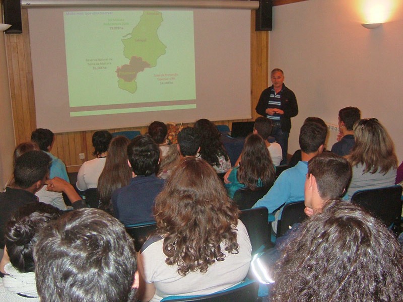 Ontem, Segunda-feira, cumpriu-se a primeira de três jornadas na Serra da Malcata. A sorte bafejou os participantes, pois foi-lhes dada a rara oportunidade de observar de perto a maior ave do continente europeu, o abutre negro. Foi também o momento para perceber a importância da anilhagem para o conhecimento da vida e hábitos das aves, através da demonstração proporcionada por um técnico do ICN, em pleno coração da Reserva da Malcata. Hoje, Terça, já teve lugar a programada palestra de sensibilização ambiental no auditório da RNSM, totalmente preenchido por alunos do 9º Ano do Agrupamento Ribeiro Sanches, bem como a inauguração da exposição “A Malcata aos olhos das crianças e jovens”, patente na Biblioteca Municipal e composta de trabalhos dos meninos do 1º Ciclo.