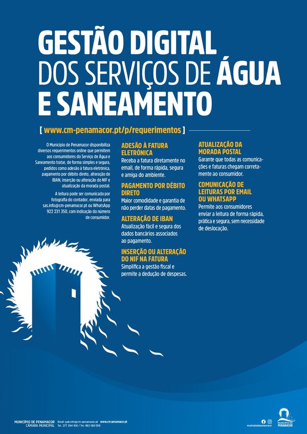 Fatura eletrónica, débito direto e atualização de IBAN e NIF na fatura da água.
